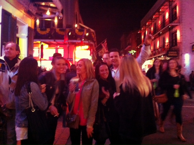 Hi Lovies!! I survived, and am recovered (for the most part). I’m officialy sick now but def in better shape than I thought I would be. Water, water, water and HOTyoga helped a ton yesterday and today. Latte’s for breakfast didn’t hurt either. New Orleans this past, for a Girls Gone Wild Weekend Bachelorette Party. Really I could stop there and just post pics and you’d get the idea. Let’s try that…